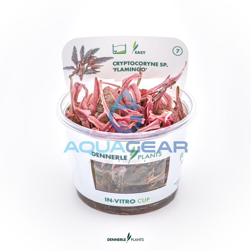 Diese Sorte ist keine natürlich vorkommende Wildform, sondern entstand durch eine zufällige Mutation innerhalb von Laborbeständen. Die Vermehrung erfolgt über In-vitro-Kultur, was eine gleichbleibend hohe Qualität und die Freiheit von Algen, Schnecken und anderen Verunreinigungen garantiert. Botanisch wird „Flamingo“ häufig in enger Verwandtschaft zu Cryptocoryne wendtii gesehen, auch wenn die genaue taxonomische Zuordnung nicht abschließend gesichert ist.