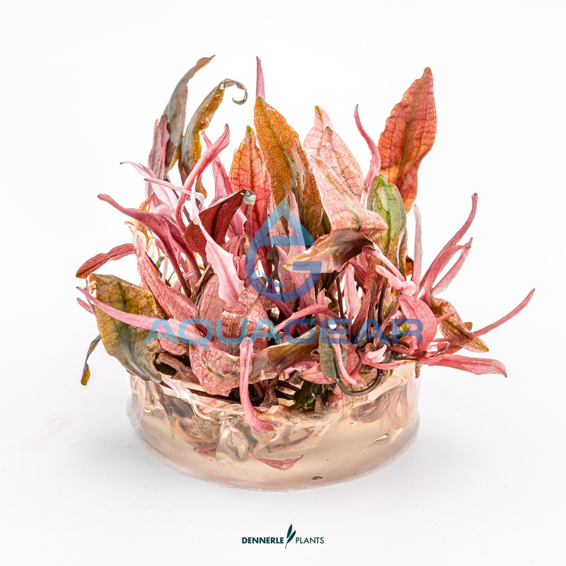 Eine außergewöhnliche und attraktive Züchtung ist die Sorte 'Flamingo'. Das hervorstechende Merkmal ist die hell- bis dunkelrosa Farbe der Blätter. Entstanden ist die Sorte durch eine Laune der Natur in unseren Gewächshäusern. Die 'Flamingo' wird ausschließlich über Meristemvermehrung im Labor kultiviert und auch in der Meristemdose in den Handel gebracht. Ihr Wachstum im Aquarium ist sehr langsam und eine gute Beleuchtung ist für eine erfolgreiche Kultur unbedingt notwendig. Sie wirkt in Kombination mit Moosen oder Hemianthus sehr dekorativ in kleinen Aquarien oder Nano Cubes