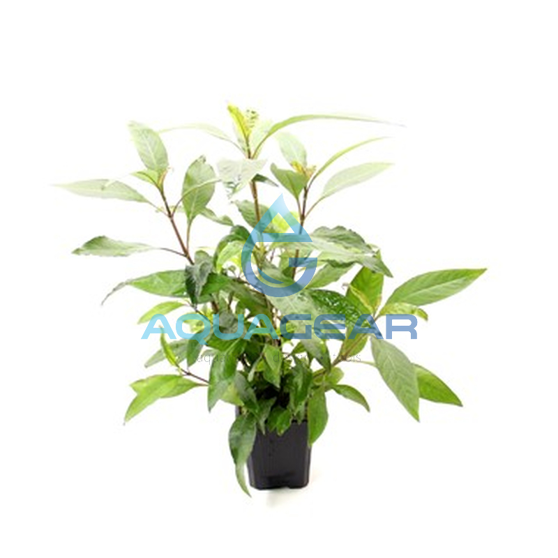 Die Pflanze bildet kräftige, aufrechte Stängel, die bei guten Bedingungen eine Höhe von bis zu 40 Zentimetern erreichen können. Ihre länglich-ovalen Blätter sind frischgrün bis leicht olivfarben und stehen dicht an den Stängeln, was ihr ein buschiges Erscheinungsbild verleiht. Bei intensiver Beleuchtung oder Nährstoffzugabe entwickeln die oberen Blätter gelegentlich einen leicht bronzefarbenen Schimmer – ein attraktiver Kontrast, der dem Aquarium zusätzliche Tiefe verleiht.