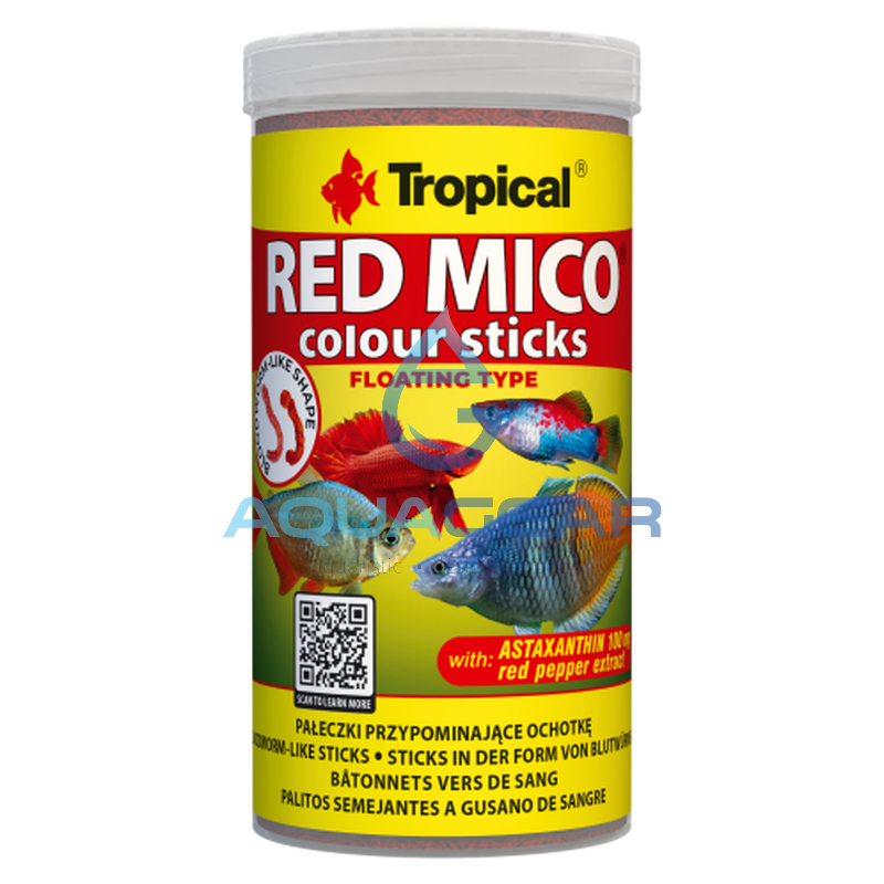 RED MICO COLOUR STICKS ist ein speziell entwickeltes extrudiertes Fischfutter in Form schwimmender Sticks, das in seiner Form und Farbe lebenden Blutwürmern ähnelt. Diese Gestaltung fördert ein natürliches Fressverhalten bei alles- und fleischfressenden Zierfischen aus Süß-, Brack- und Meerwasser, da die Sticks im Wasserstrom des Filters in Bewegung geraten und so das Verhalten von lebenden Larven imitieren.